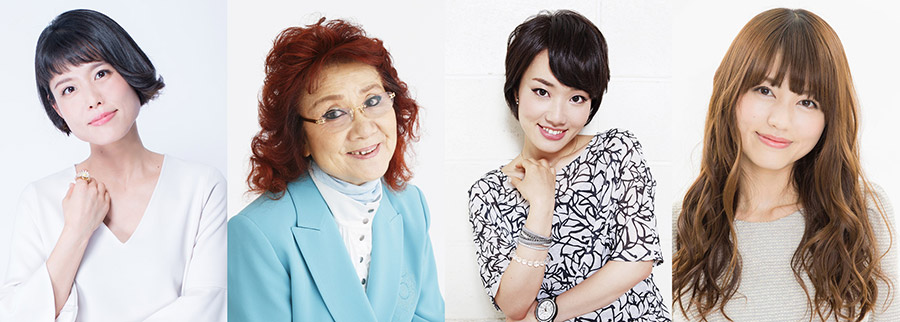 左より鬼太郎役の沢城みゆきさん、目玉おやじ役の野沢雅子さん、ねこ娘役の庄司宇芽香さん、犬山まな役の藤井ゆきよさん